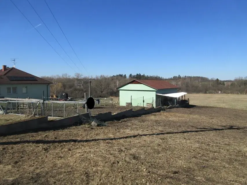 Popis: slunný stavební pozemek určený k výstavbě rodinného domu venkovského charakteru. Na pozemku se nachází stavba bez č.p./č.e., která je nyní využívána na ustájení koní.
