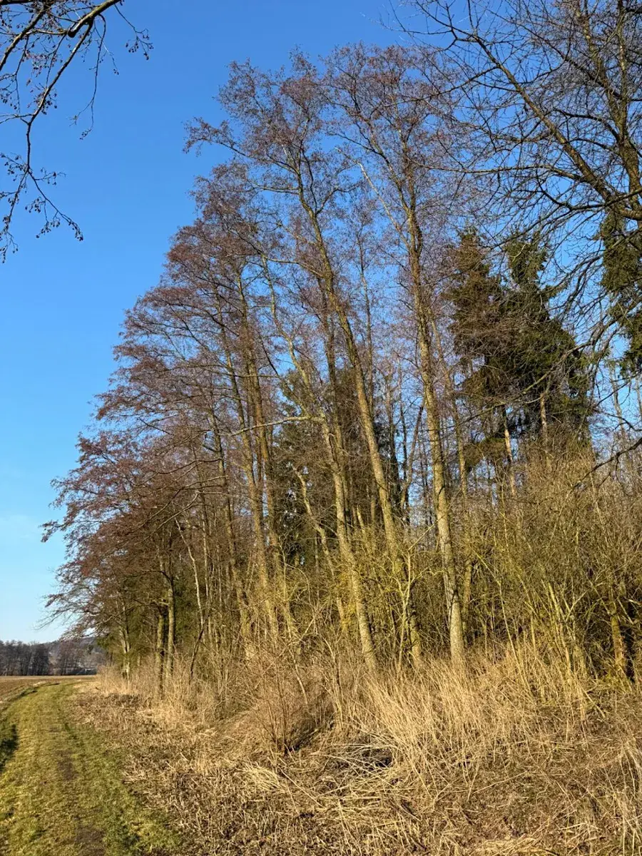 Pole je v mírném svahu, les ve svahu mezi poli.