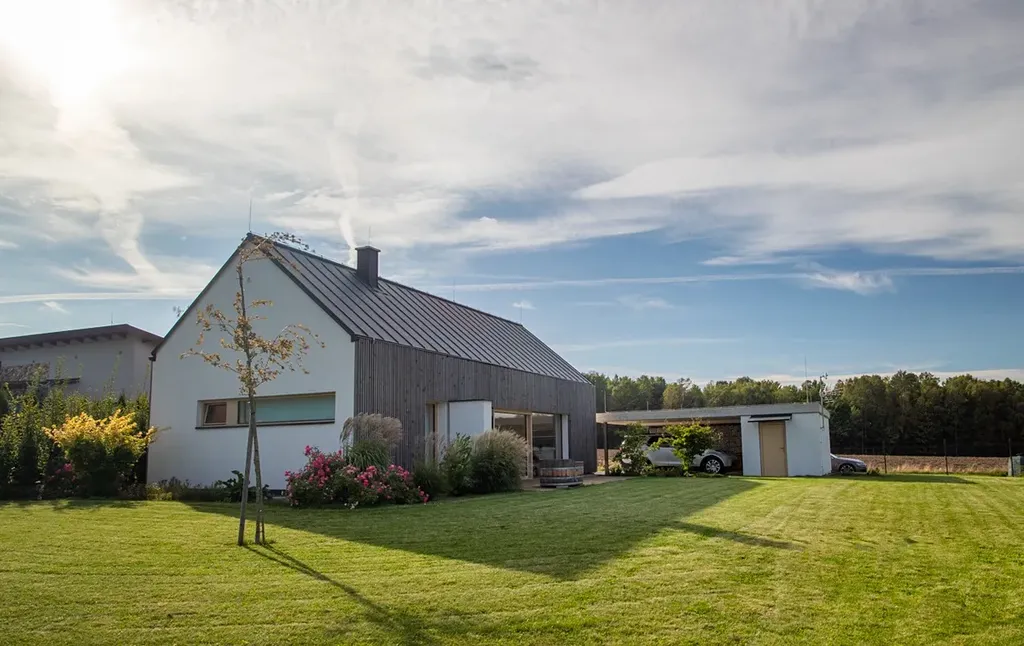 Venkovní prostor tvoří rozlehlá udržovaná zahrada o výměře 1200 m², která nabízí dostatek místa pro rodinné aktivity a relaxaci. K dispozici je také stání pro dvě motorová vozidla s kůlnou.