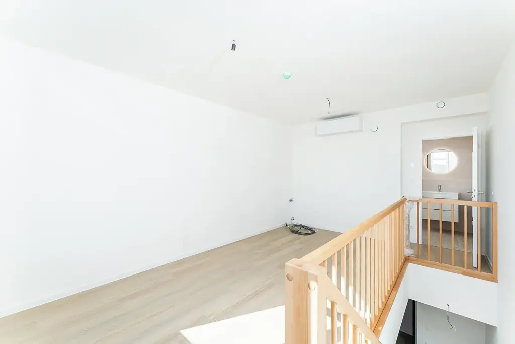 Jednotka je jihovýchodně orientovaná, díky čemuž je interiér po celý den příjemně prosvětlený. Dispozičně je řešena jako mezonet – v dolním podlaží se nachází vstupní hala, samostatná toaleta a otevřený obytný prostor s kuchyní, v horním patře ložnice s vlastní koupelnou, která zajišťuje maximální soukromí.