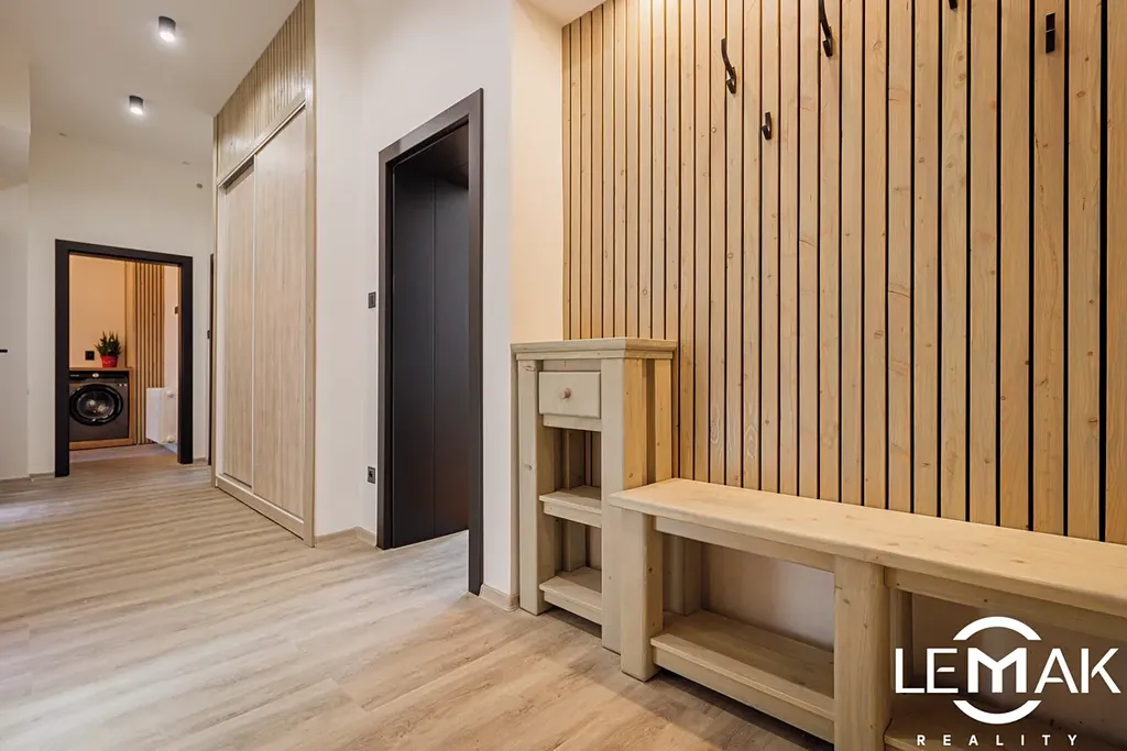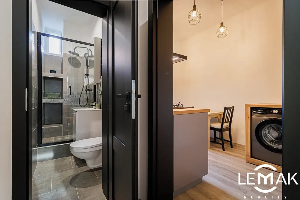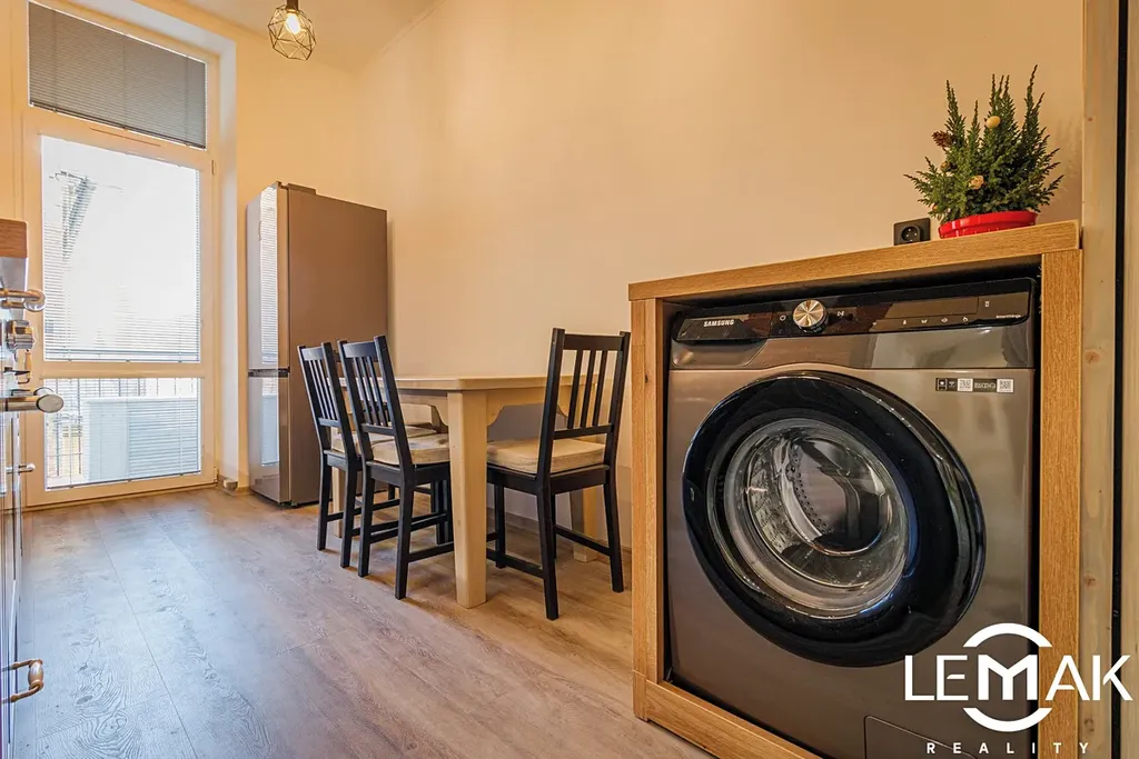 Kuchyně je kompletně vybavena včetně myčky na nádobí, což znamená snadnější a pohodlnější každodenní život. V ceně nájmu jsou zahrnuty další výhody, jako je pohodlná sedací souprava, moderní televize, pračka, vestavěná skříň a manželská postel.