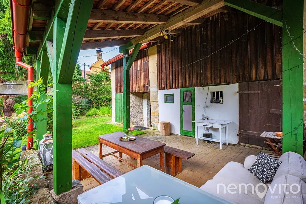 Dole bydlíte, nahoře podnikáte. Nebo vůbec - variant má tento dům skutečně nespočet. Již samotnou polohou, kde doslova přes ulici začíná CHKO Kokořínsko (a také spousta zážitků v pivovaru), je dáno široké vyžití. Na Kokořín lehce přes 10 km a nekonečné procházky a čundry po okolních lesích. Ty můžete zakončit třeba grilování pod velkým přístřeškem samostatné stodoly, která se zastavěnou plochou přes 80 m2 nabízí několik skladových místností, WC, venkovní kuchyni nebo velký půdní prostor.