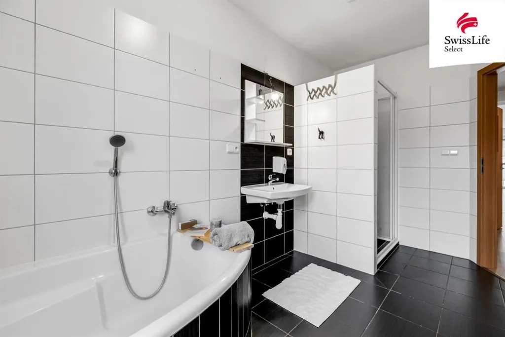 Ve spodní části naleznete dále pracovnu, technickou místnost, koupelnu s rohovou vanu i sprchovým koutem a samostatné wc.