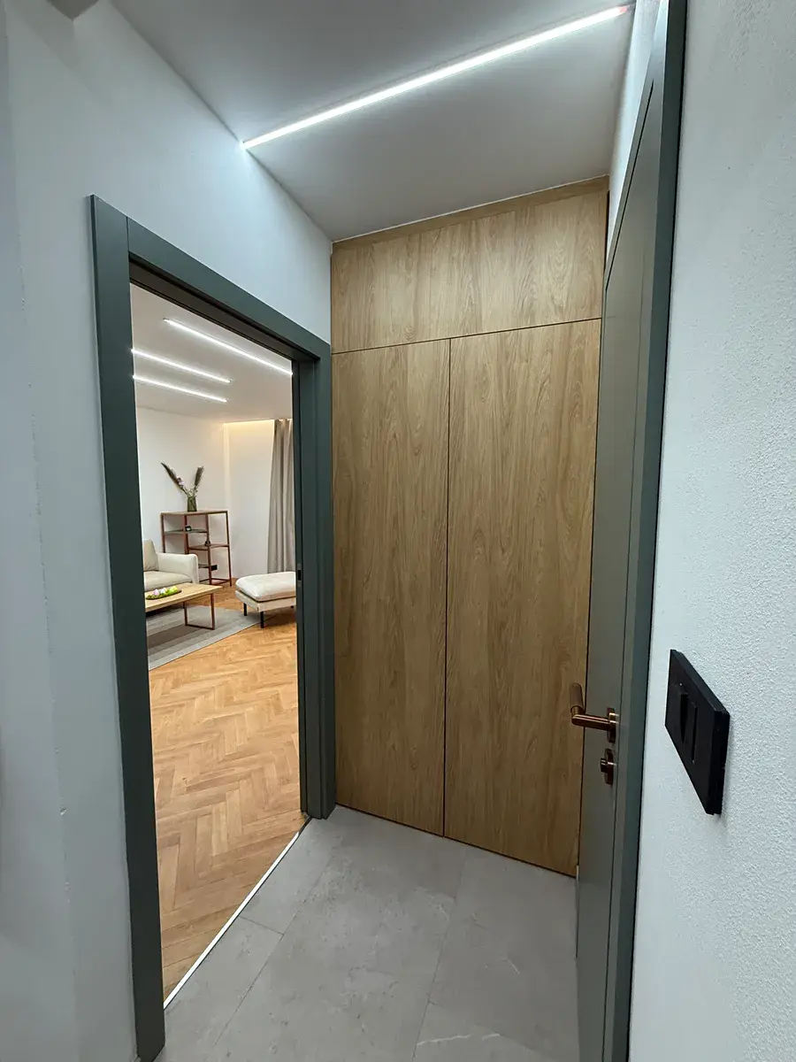 • Chytré řešení: Nenápadně integrovaný prostor pro pračku, sušičku a domácí příslušenství, který neruší design bytu.
