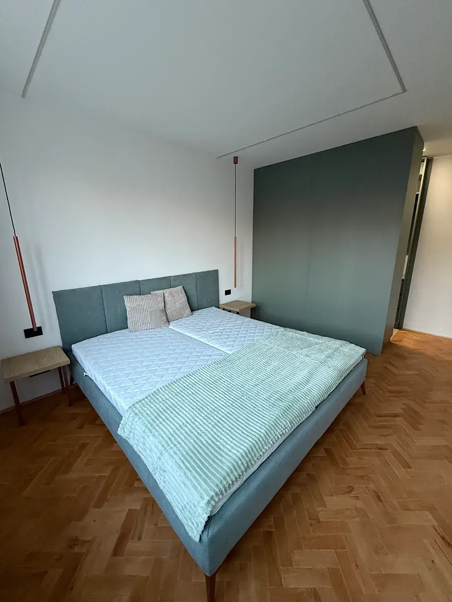 • Nová vinylová podlaha v chodbě a kuchyni, ve zbývajících pokojích byla provedena renovace parketových podlah ošetřetřena voskem značky Osmo.