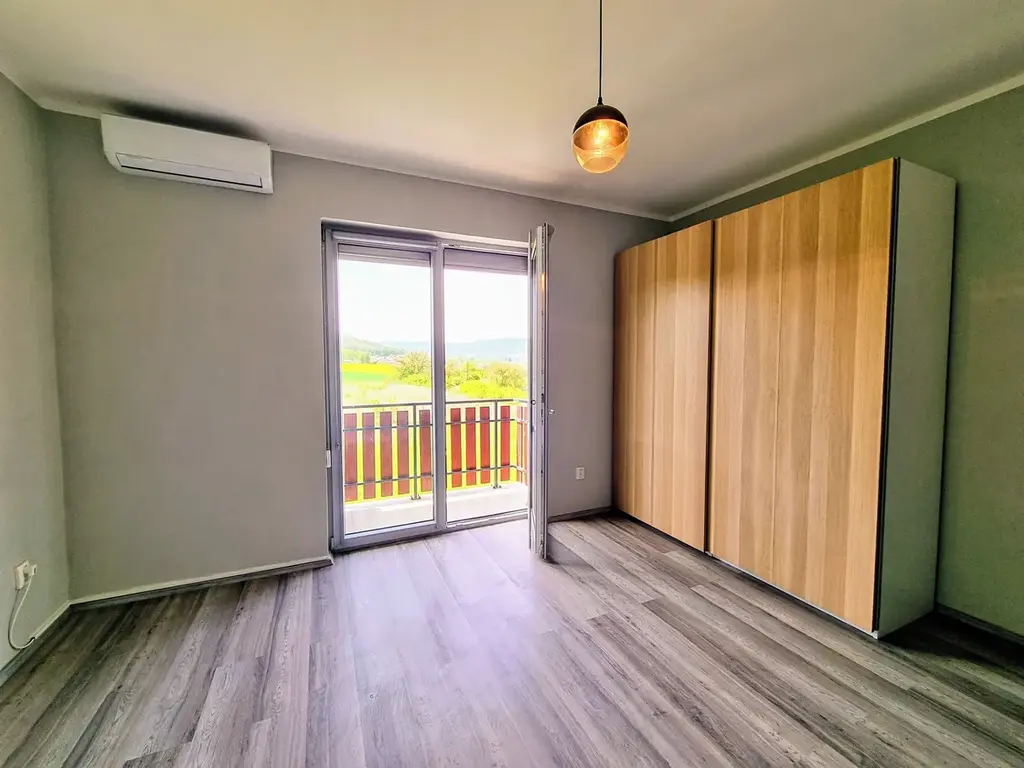 V patře je velká vstupní chodba ( využívaná jako obývací pokoj ) se vstupem na velmi prostornou terasu s krásným výhledem do okolí, čtyři pokoje se třemi koupelnami a toaletami a místnost připravená na zabudování kuchyňské linky.