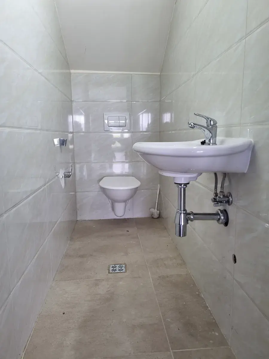 V přízemí domu jsou čtyři pokoje , kde má každý z nich svojí koupelnu s toaletou, velký obývací pokoj se šesti francouzskými okny se vstupem na zahradu, kuchyň s kuchyňskou linkou a toaletou pro hosty.