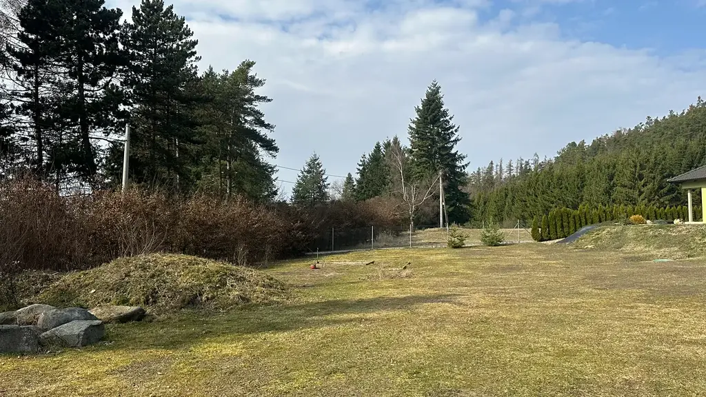Pozemek je stavební o rozloze 1822 m² nabízí dostatek prostoru pro zahrádkaření, relaxaci nebo různé venkovní aktivity Na pozemku je zahradní dům pro posezení a grilování. Je zde zajištěno parkování a dům je situován v zástavbě vhodné pro bydlení, což zajišťuje soukromí a pohodu. Lokalita dále poskytuje snadnou dostupnost autobusem, což usnadňuje spojení s okolními oblastmi.