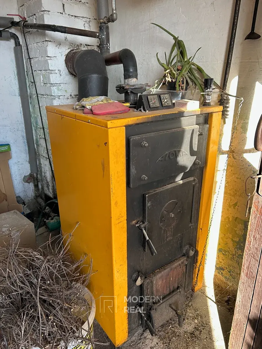 - V zadní části domu se nachází kotelna s elektrickým bojlerem a kotlem na dřevoplyn