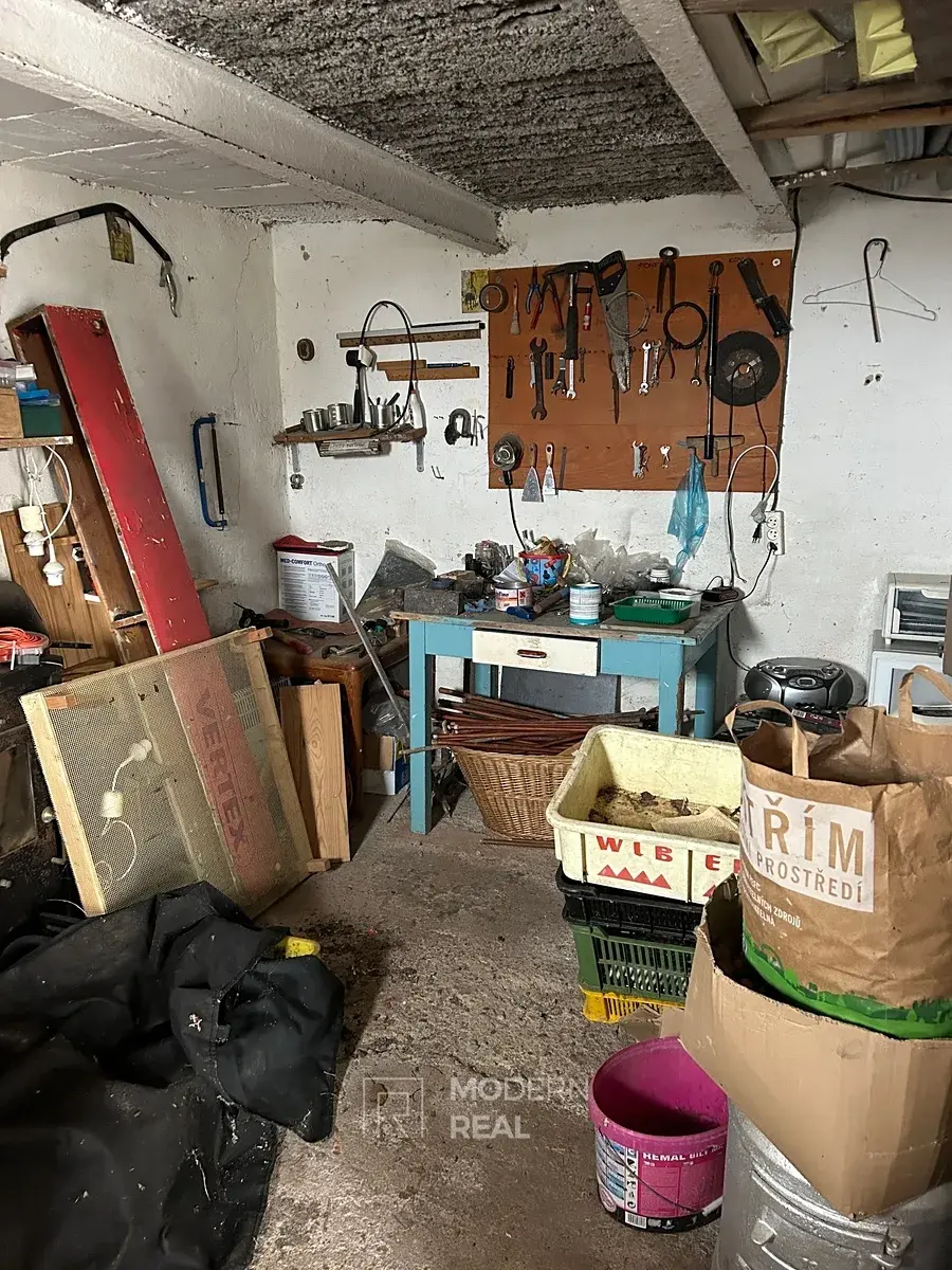 - Dále prostorná dílna (19 m²) a dřevník