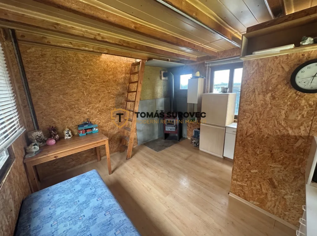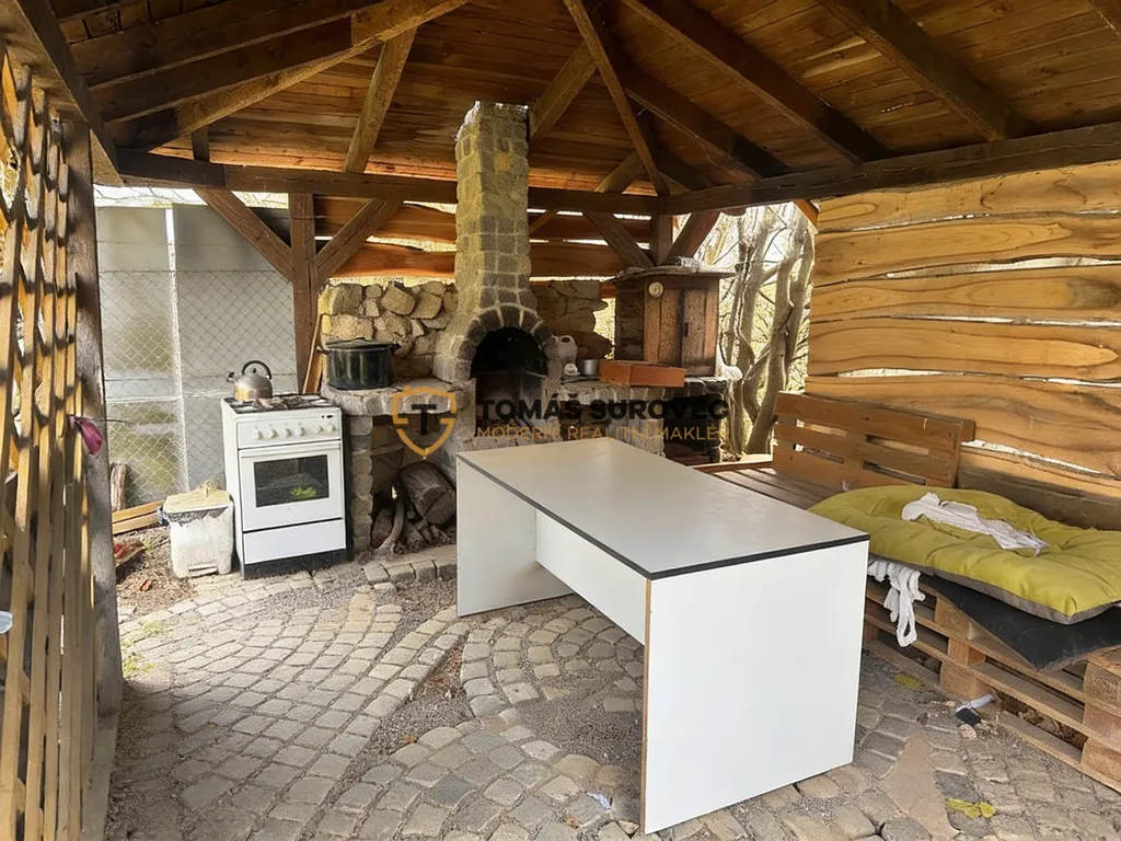 Na pozemku se nachází chata, která je dispozičně řešena jako obývací prostor v přízemí a podkrovní část určená ke spaní. Interiér působí příjemně a poskytuje vše potřebné pro víkendové pobyty i delší únik z každodenního shonu. Atmosféru dokresluje venkovní posezení s krbem, které přímo vybízí k relaxaci, grilování a trávení času s rodinou či přáteli.