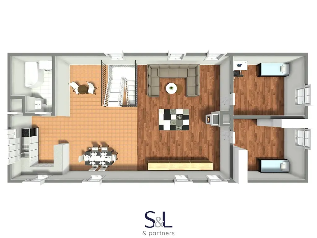 Dům poskytuje skutečně široké možnosti využití, což je jeho největší přidaná hodnota. V přízemí se nachází dispozice 2+1 o výměře 67 m², na kterou navazuje prostorná garáž s regály o velikosti dalších cca 67 m². Tento prostor může sloužit nejen k parkování a jako dílna, ale také jako sklad, provozovna, ateliér, menší obchod nebo zázemí pro podnikání přímo u vašeho domova. Objekt byl navíc původně kolaudován pro provoz prodejny auto-moto součástek, což jeho využitelnost ještě dále rozšiřuje. Díky samostatnému uspořádání lze přízemí využít i jako oddělený byt například pro rodiče, dospělé děti nebo k pronájmu. V podkroví se nachází velkoryse řešený byt o dispozici 3+kk s výměrou přibližně 134 m², který poskytuje dostatek prostoru pro komfortní rodinné bydlení. Dům tak umožňuje vícegenerační soužití bez ztráty soukromí, kombinaci vlastního bydlení s investičním pronájmem nebo propojení domova a podnikání pod jednou střechou.