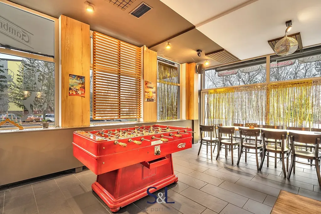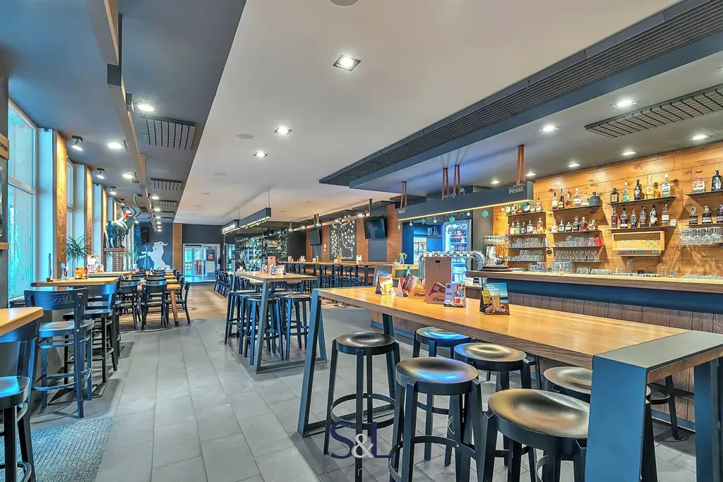 • Vybavení: Bar disponuje kvalitním značkovým nábytkem, moderními výčepními zařízeními, chladicími a mycími technologiemi. Součástí je i profesionální audiovizuální vybavení včetně zvukového systému, stropních reproduktorů a satelitních přijímačů.