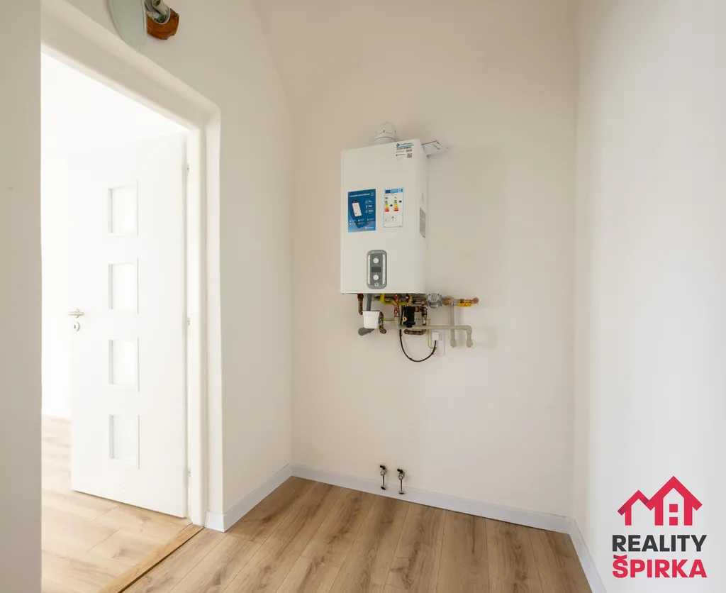 Interiér prošel kompletní rekonstrukcí a dosud voní novotou. Dominantou je luxusně prostorná koupelna se sprchovým koutem a vyhrazeným místem pro pračku i sušičku. Srdcem bytu je velká kuchyně s novou linkou, sklokeramickou deskou a troubou. O teplo a ohřev vody se stará vlastní plynový kotel, který zajišťuje plnou kontrolu nad energiemi.