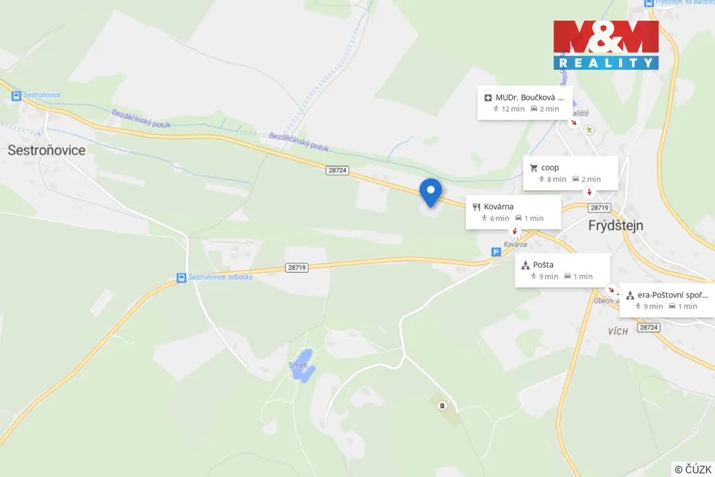 Vila se nachází v klidné obci Frýdštejn – Sestroňovice, v jedné z nejmalebnějších lokalit Českého ráje. Okolí nabízí nádhernou přírodu, skalní vyhlídky, lesy a turistické stezky přímo za domem. Lokalita je ideální pro milovníky klidu, aktivního odpočinku i rodinného života v harmonii s přírodou.