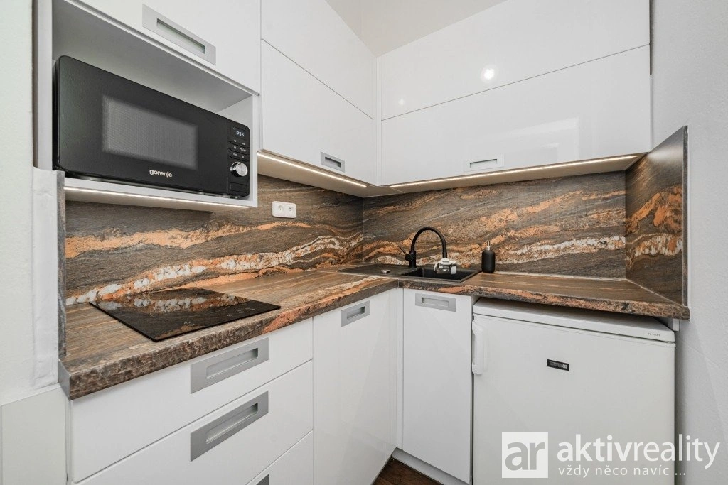 Zázemí: Vybavená kuchyňka a sociální zařízení přímo na patře.