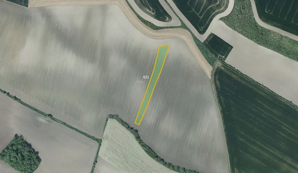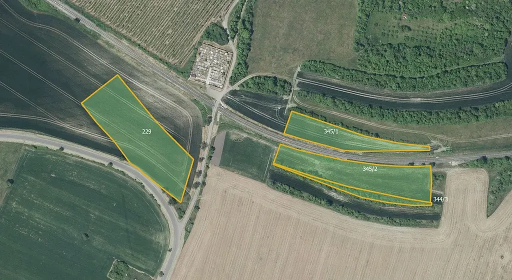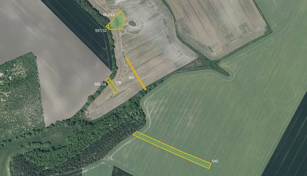 orná půda: 105, 163, 229, 345/1, 345/2, 431, 540, 576, 597/32, 601, 661/12, 685, 689/3, 769 - celkem 74 909 m²