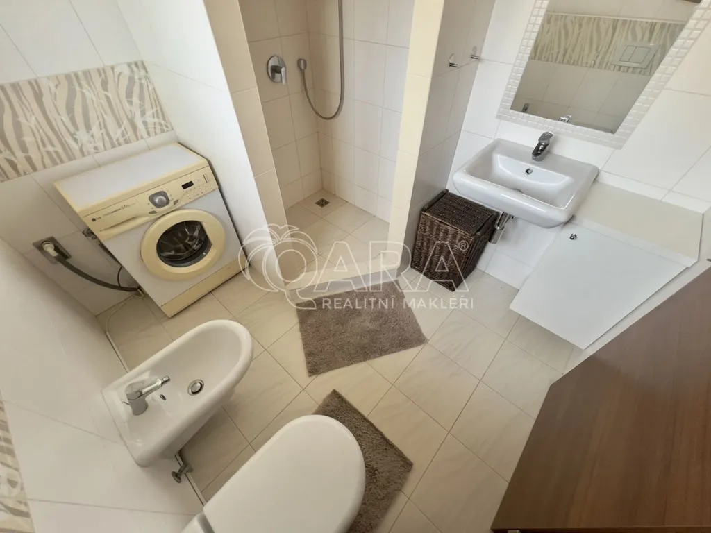 Jednotka o výměře 32 metrů čtverečních se nachází v 1. nadzemním podlaží (přízemí). Skládá se z předsíně, ze které se dostaneme do kuchyně, která je spojená s obývacím pokojem a je zařízena kuchyňskou linkou s lednicí s mrazákem, dvouplotýnkovou varnou deskou, digestoří a přenosnou troubou s grilem. Dále je k dispozici barový stůl a rozkládací sedací souprava. Z obytné části je přístupná samostatná ložnice o výměře 9 metrů čtverečních a je zařízena vestavěnou skříní. Zbytek pokoje se pronajímá nezařízený, tím pádem si jej můžete vybavit dle svých vlastních představ. Koupelna je přístupná z předsíně a je vybavena sprchovým koutem, umyvadlem, skříňkou, zrcadlem a přípojkou na pračku (pračka není součástí nájmu). WC je v koupelně. Celý byt je orientovaný do slepé ulice Borová.