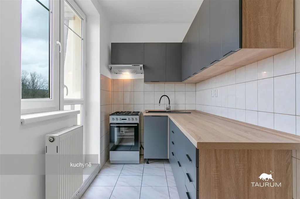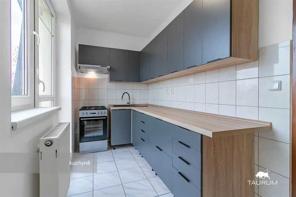 Byt je orientovaný na severní stranu a jeho součástí je balkon o velikosti 2,5 m² se vstupem z kuchyně. Byt je nevybavený a má k dispozici novou kuchyňskou linku a nový kombinovaný sporák (plynová varná deska a elektrická trouba). Podlahy jsou plovoucí v obytných místnostech, v kuchyni, koupelně a na chodbě je položena dlažba. K bytu náleží sklepní kóje o velikosti cca 3 m².