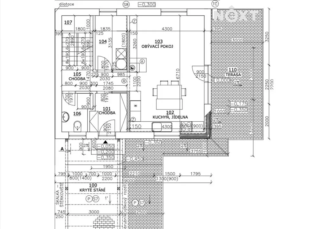 Dominantou domu je světlý obývací prostor s kuchyňským koutem a jídelnou, který tvoří přirozené srdce domova. Nechybí ani příprava na krb, díky které si můžete vytvořit útulnou atmosféru podle svých představ.