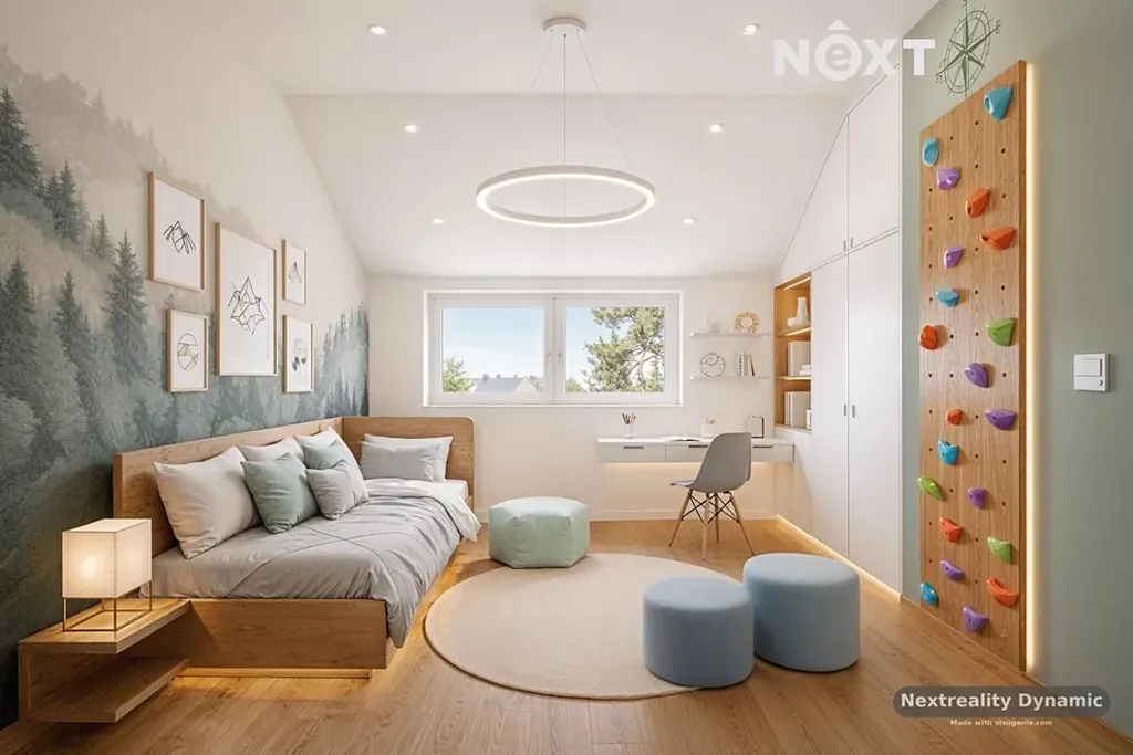 V patře se nachází tři samostatné pokoje, které poskytují dostatek soukromí pro každého člena rodiny. Praktické řešení doplňuje technická místnost a dvě koupelny – jedna se sprchovým koutem, druhá s vanou.