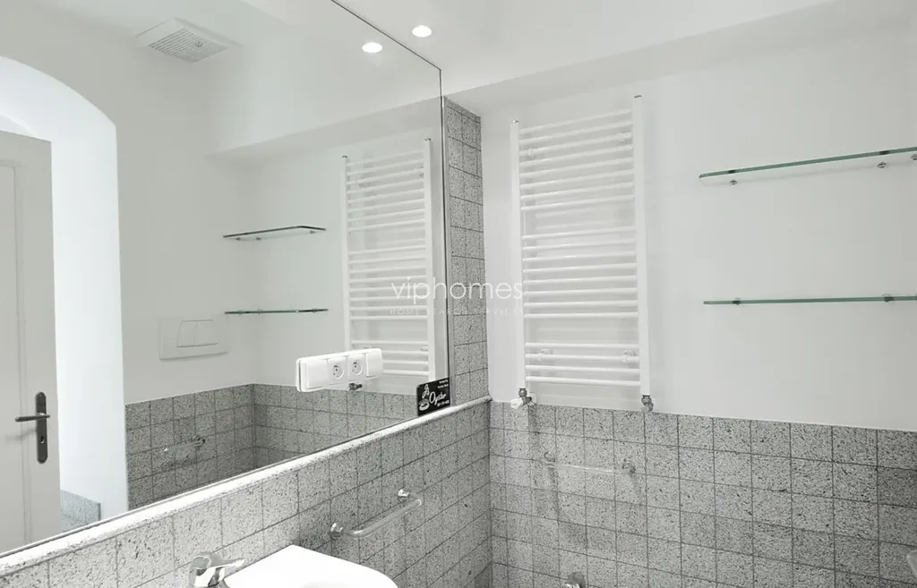 Interiér bytu tvoří obývací pokoj s jídelnou, (původní malovaný strop), plně vybavená kuchyň, dvě ložnice, jedna s vlastní koupelnou, druhá koupelna, šatna, úložní prostor. Byt je zařízený kombinací starožitného a moderního nábytku. Vestavěné skříně na chodbě, bezpečnostní dveře, pračka, myčka, mikrovlnná trouba, SAT a přípojka na TV.