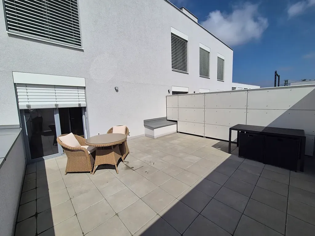 Terasa: Z obývacího pokoje je vstup na prostornou terasu s ratanovým nábytkem, která nabízí skvělý prostor pro relaxaci.
