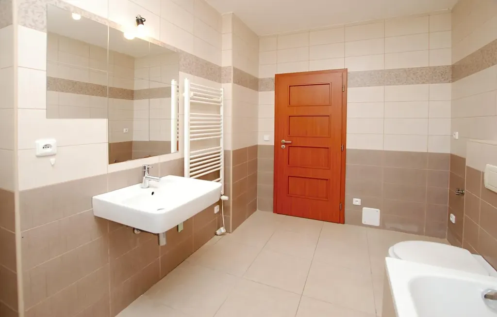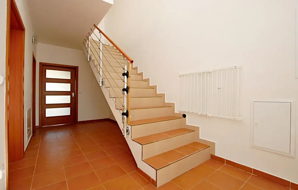 Z předsíně vede schodiště do prvního patra, kde se nachází ložnice a dva samostatné pokoje. V patře je dále koupelna se sprchovým koutem a WC. Další úložný prostor nabízí podkroví přístupné po výklopných schodech.
