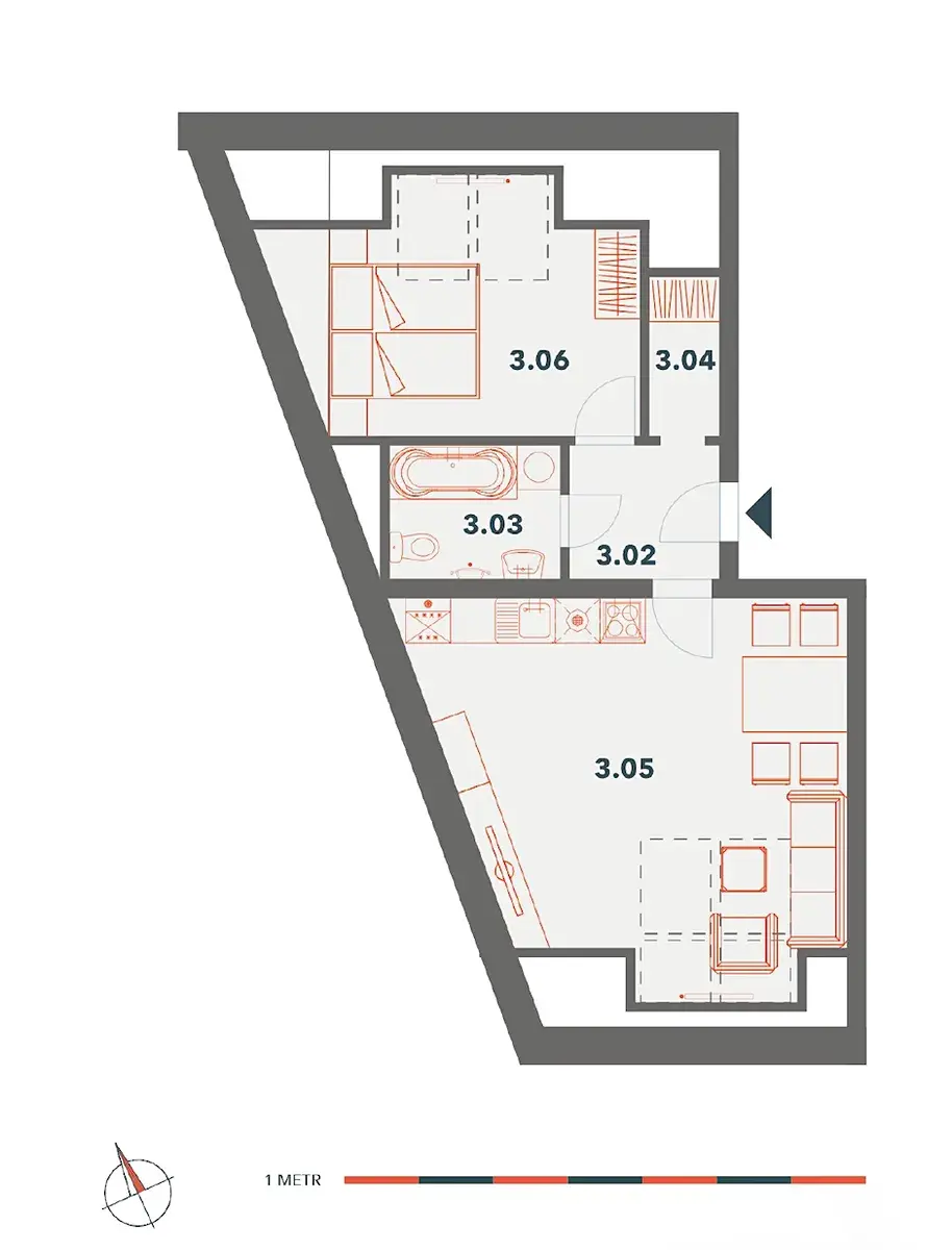 Krásný byt 2+kk v novostavbě BYTY CUKROVAR. Velká předsíň, koupelna (sprchový kout, WC, umývadlo, příprava pro pračku a sušičku), komora, obývací pokoj s kuchyňskou linkou (varná deska, lednice, trouba, mikrovlnka a myčka) a ložnice.