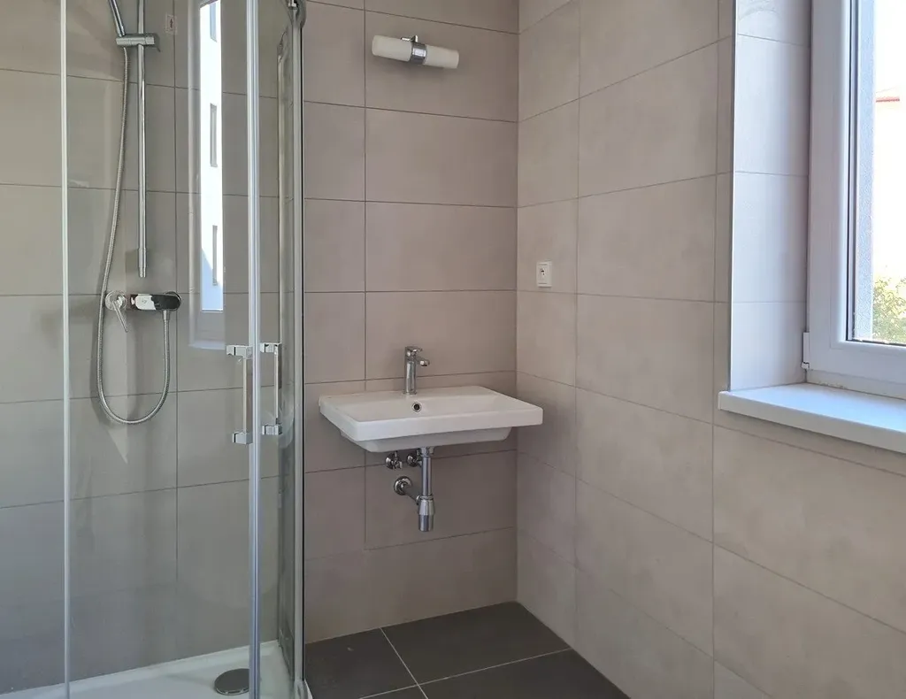 Hezký a prostorný byt o uspořádání 3+kk je umístěn ve 3. nadzemním podlaží bytového domu, zkolaudovaného v r. 2023. Dům stojí na nároží ulic Jaselská a Jiřího z Poděbrad v Hranicích a vzniklo v něm 70 bytů, a také garážová stání i samostatné garáže. Užitná plocha bytu je 63 m2 a k tomu navíc balkon o ploše 4 m2. Z velkého obytného pokoje (29 m2, orientace JZ směrem) je jasně vymezen kuchyňský kout a z místnosti je výstup na balkon. Z pokoje se dále vchází do ložnice (12 m2) a do dětského pokoje (12 m2, orientace do vnitrobloku, směrem na východ). Z prostorné předsíně, která je přímo osvětlená oknem z vnitrobloku je vstup do koupelny (4 m2), která má také vlastní okno a je vybavená sprchovým koutem, topným žebříkem, umyvadlem a přípravou na pračku. WC je samostatné. Za výhodnou cenu lze přikoupit sklep.