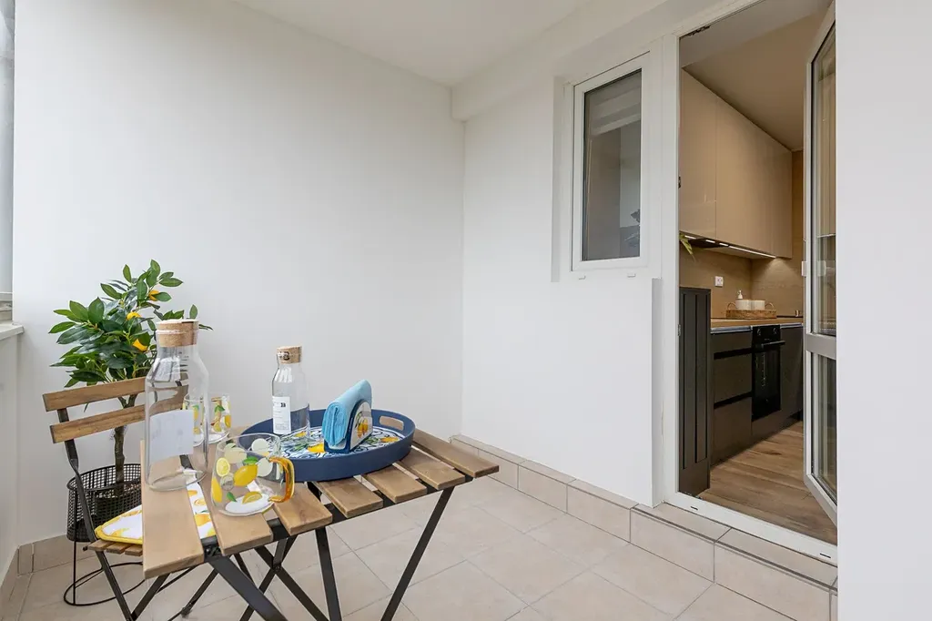 Z kuchyně je praktický vstup na prostornou zasklenou lodžii o ploše 6m2, kde můžete posnídat při východu slunce či si dát drink nebo pěstovat kytičky.