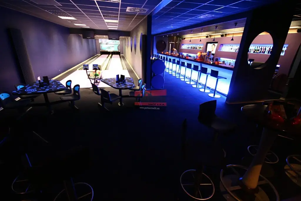 1.NP: bar s posezením: 97,65 m², zázemí hráčů: 37,62 m², bowlingové dráhy: 103,40 m², strojovna: 7,95 m², herna: 29,30 m², chodba: 17,90 m², úklid: 1,89 m², WC muži: 8,40 m², WC ženy: 8,00 m², zázemí baru: 9,30 m².