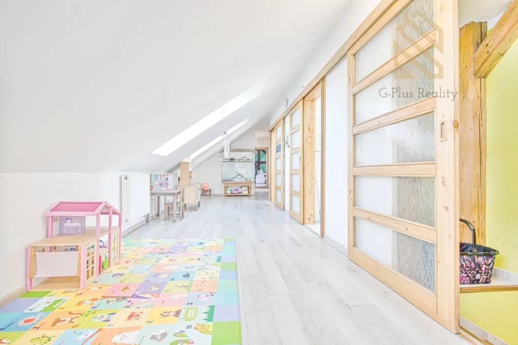 V přízemí domu se nachází bytová jednotka o dispozici 3+1, která zahrnuje chodbu, kuchyň, obývací pokoj, ložnici, koupelnu, technickou místnost s kotlem na tuhá paliva, dílnu a kancelář. V patře je situována prostorná, velmi vkusně rekonstruovaná bytová jednotka 4+kk o ploše 120 m². Dispozice zahrnuje moderní kuchyň propojenou s obývacím pokojem, ložnici, dva dětské pokoje, šatnu a koupelnu s WC.