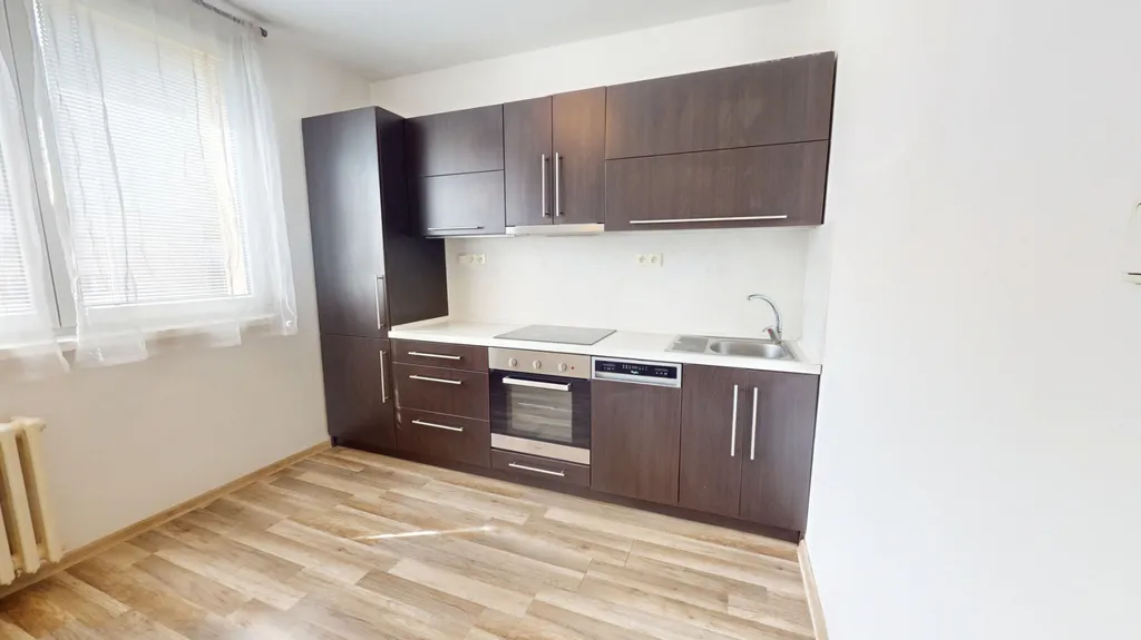 V bytě je plovoucí podlaha, koupelna je vybavena sprchovým koutem, koupelnovou skříňkou se zrcadlem a toaletou. Kuchyňská část disponuje varnou deskou, elektrickou troubou, vestavěnou lednicí s mrazákem, myčkou a digestoří.