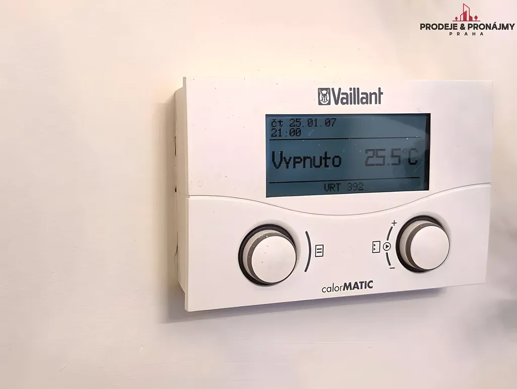 Topení a ohřev vody je zajištěno pomoci plynového kotlu.