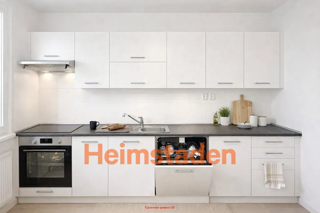 Kuchyně je vybavena kuchyňskou linkou s elektrickými vestavěnými spotřebiči včetně myčky. Praktickým benefitem je také prostor pod pracovní deskou pro umístění pračky s předním plněním.