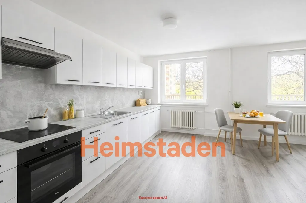 Interiér bytu nabízí tři samostatné a neprůchozí pokoje, což zajišťuje dostatek soukromí – ideální řešení jak pro sdílené bydlení, tak pro rodinu. V předsíni, kuchyni i pokojích jsou položeny plovoucí podlahy v moderním šedém dekoru, které dodávají bytu jednotný a čistý vzhled.