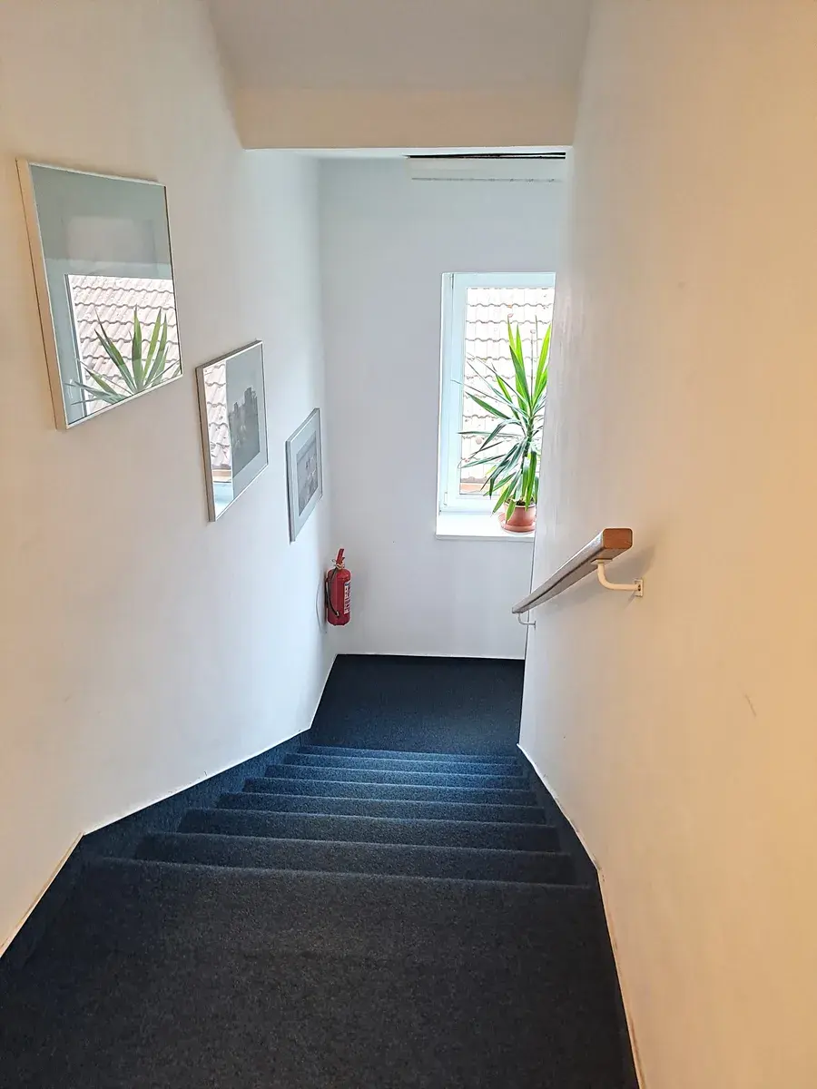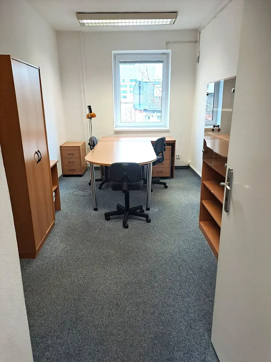 Dovolujeme si exkluzivně nabídnout k pronájmu 2 průchozí kanceláře v malé administrativní budově s recepcí. Kanceláře jsou plně vybavené nábytkem, po dohodě lze zařízení upravit. Nachází se ve 2 NP / 1. patro/. Na patře plně vybavená kuchyňka s lednicí, 2x toaleta , pánská, dámská se sprchou. V budově vysokorychlostní internet 200/200Mbps. Možnost s hodinovou sazbou pronajmout krátkodobě velkou 29m2, nebo malou zasedací místnost s projektorem. Ve vnitrobloku venkovní posezení. Po dohodě si lze za příplatek pronajmout kryté garážové stání pro jedno auto ve vedlejší budově. Služby se vyúčtovávají jednou ročně se sazbou 80,- Kč za m2 za měsíc + DPH. Pro nájemce , který není plátcem DPH se nájem od DPH osvobozuje.