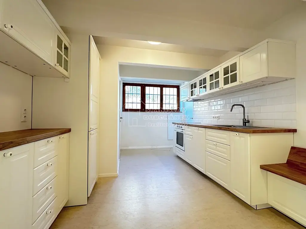 Od 1.5.2026 je Vám k dispozici ke dlouhodobému pronájmu tento nevybavený byt 1+1, 40 m2, Praha 6-Střešovice, ul. Farní. Byt je situován v polosuterénu cihlového domu, kde je jen 7 bytů. To, co činí tento byt výjimečným, je jeho přímý vstup na oplocenou zahradu u domu, kterou můžete spoluužívat s ostatními nájemníky. Na zahradě je i bazén s protiproudem. Pouze pro Vás je k využití přízemní terasa (10 m2) před vstupem na zahradu.