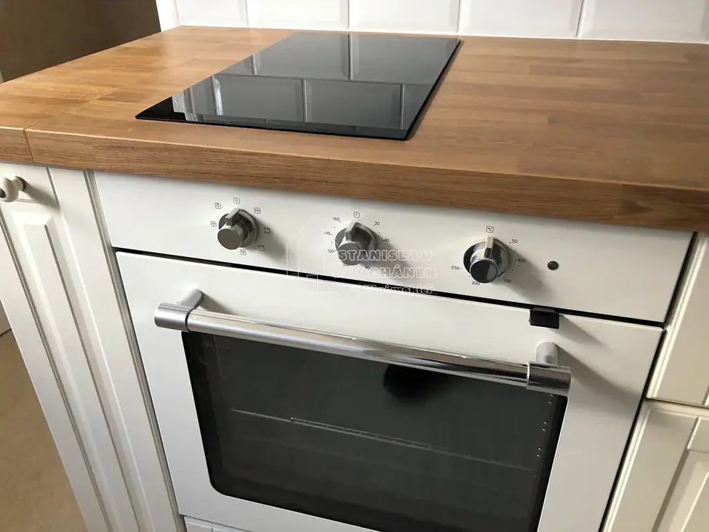 Byt je nevybavený nábytkem. V kuchyni je zánovní kuchyňská linka včetně vestavěné lednice s mrazákem, myčky, elektrické trouby, varné 2plotýnky a digestoře. Koupelna je se sprchovým koutem, je tu i místo na pračku. Ohřev vody je elektrickým bojlerem.