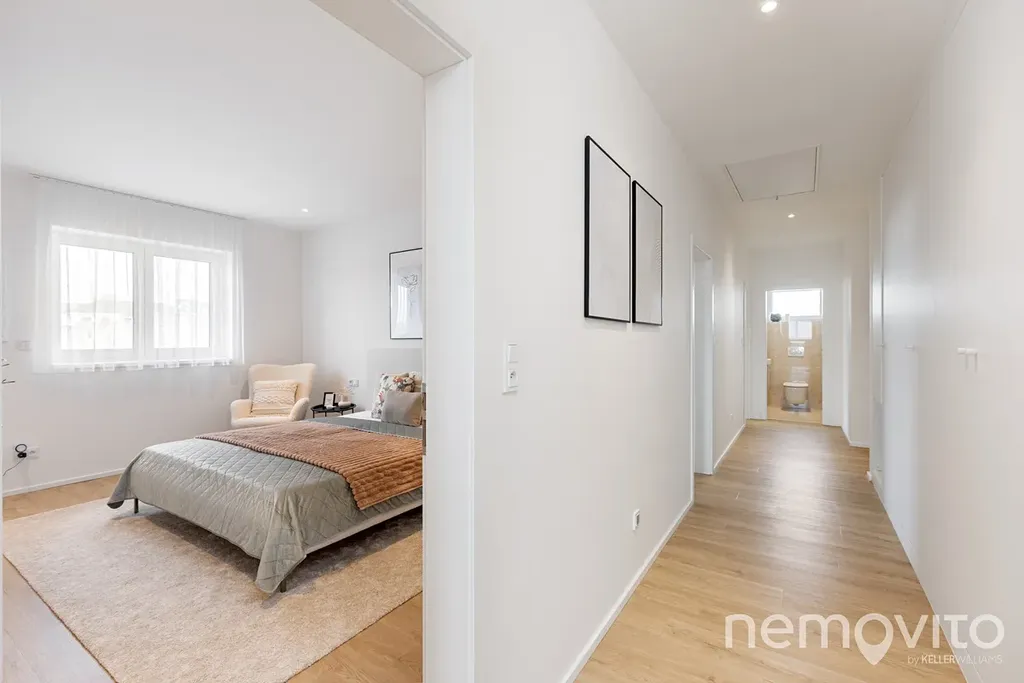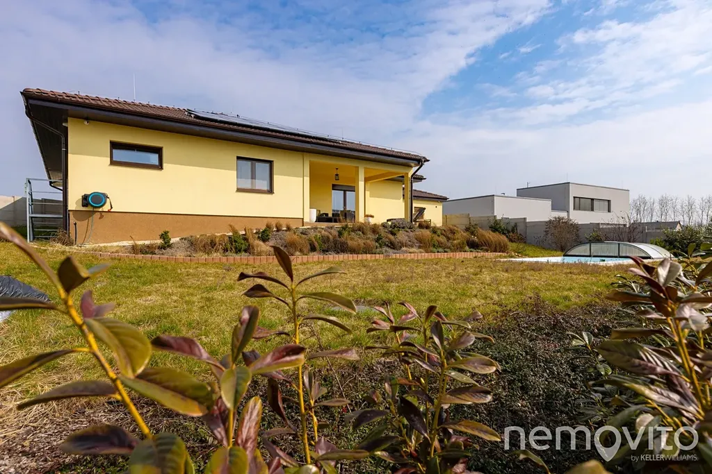 Opravdu velký bungalov o dispozici 5+kk a ploše 186 m2, ke kterému náleží ještě samostatná 25 m2 garáž a bazén. Dům je vybaven FVE s tepelným čerpadlem a jeho roční spotřeba je do 4 MWh elektřiny. Mimo provozních nákladů však vyniká zejména nezvykle velkou plochou, která je pro bungalovy atypická, ale slouží perfektně. Dům byl dokončen v roce 2023 a je tedy stále jako nový.