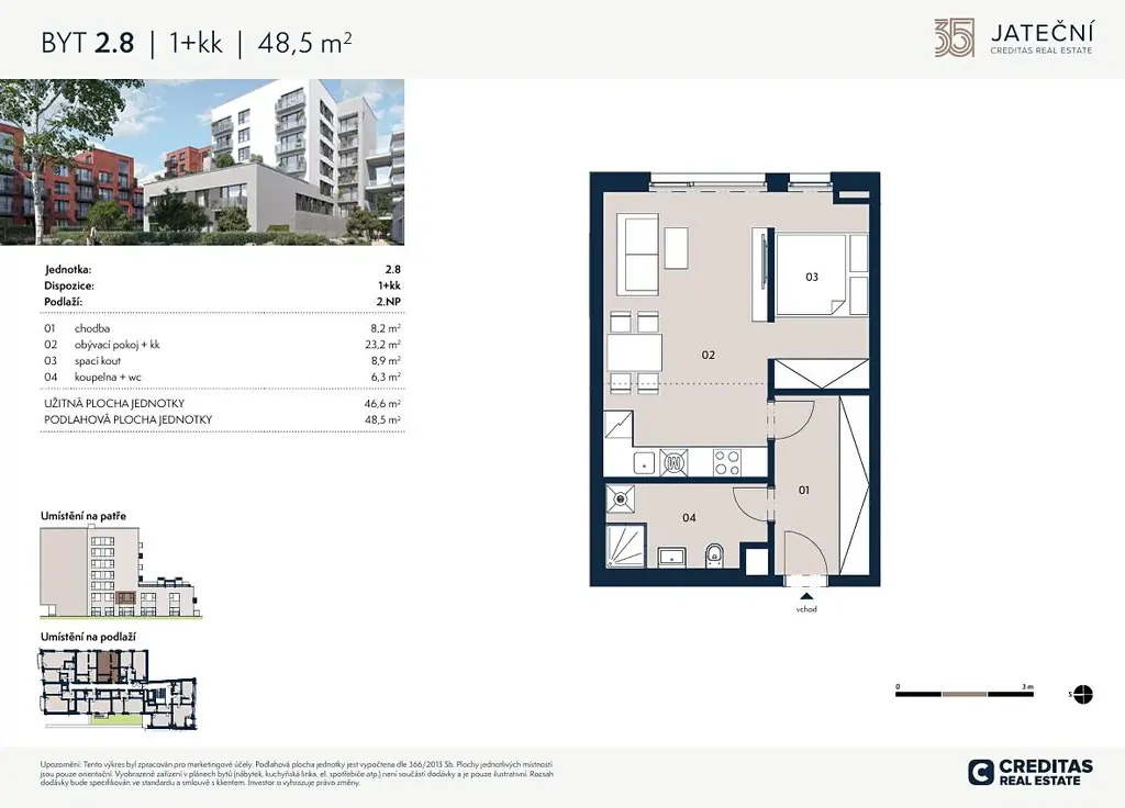 Dovolujeme si vám nabídnout byt 1+kk o celkové výměře 49 m², umístěný ve 2.NP, který je součástí projektu Jateční 35 v samém srdci Holešovic.
