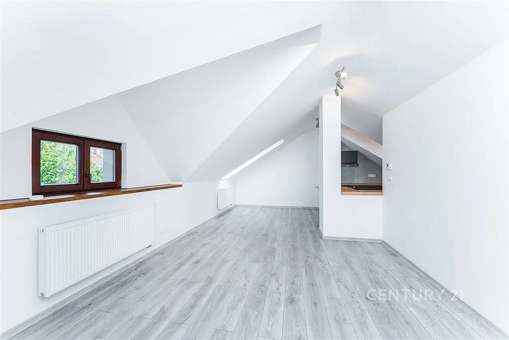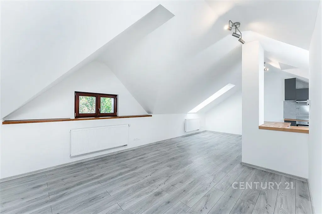 Dům je po rekonstrukci vnitřní i vnější, zateplený, s novou fasádou a střechou. Vznikly zde 3 byty, z nichž tento má spoustu zajímavých prostorových vychytávek a tu největší kuchyň. Kromě kuchyňské linky se spotřebiči je nezařízený a je jen na vás, jak si prostor po svém zabydlíte. Vstupní dveře do bytu jsou ve druhém patře a schodiště je už součástí bytu. Na odpočívadle je komora s plynovým kotlem a k odkládání věcí.