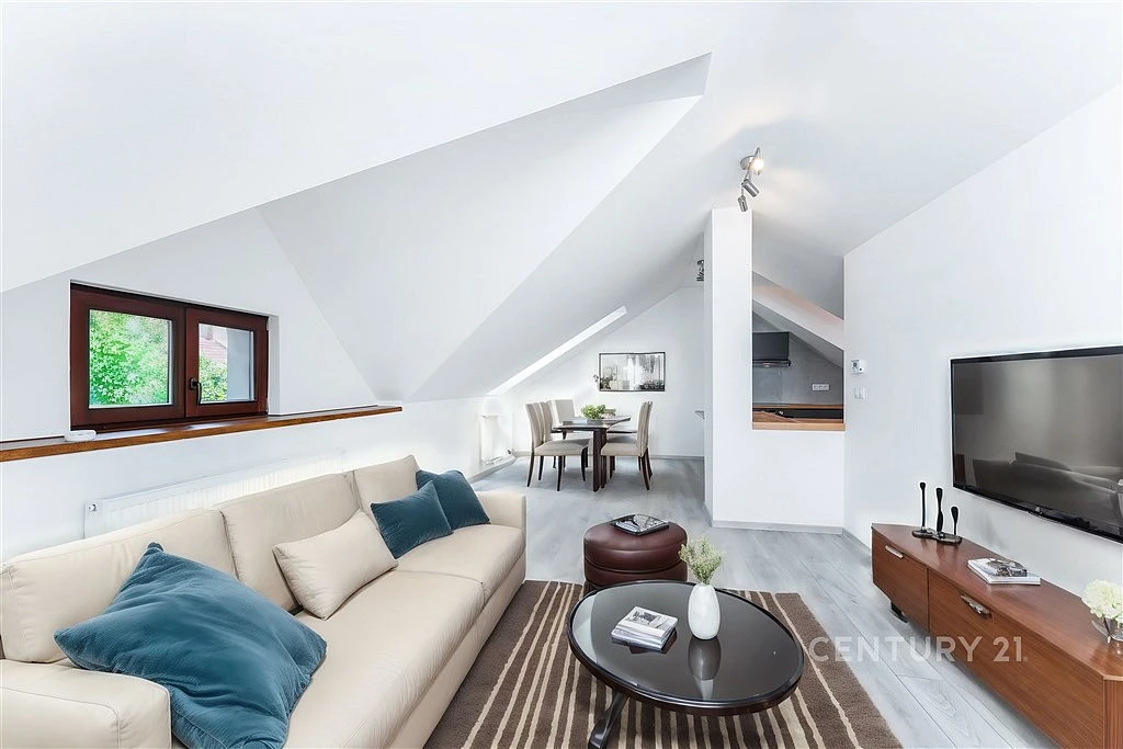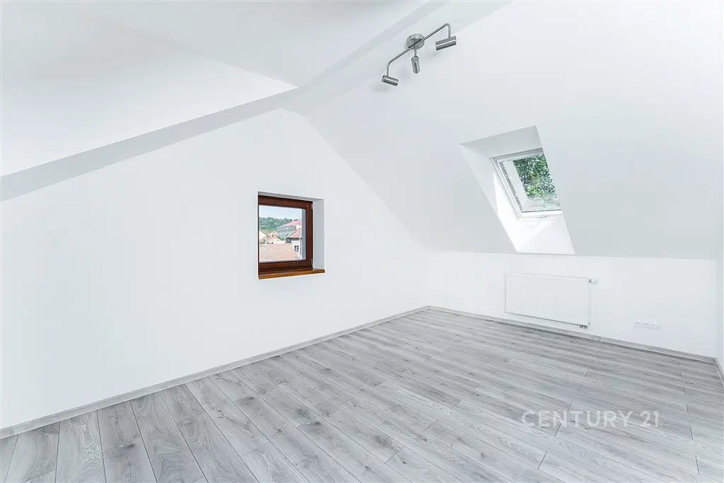 Atypický a přirozeně prosvětlený podkrovní byt 2+kk (67 m²) po kompletní rekonstrukci na vás čeká v třetím nadzemním podlaží historického domu přímo v centru Libčic nad Vltavou.