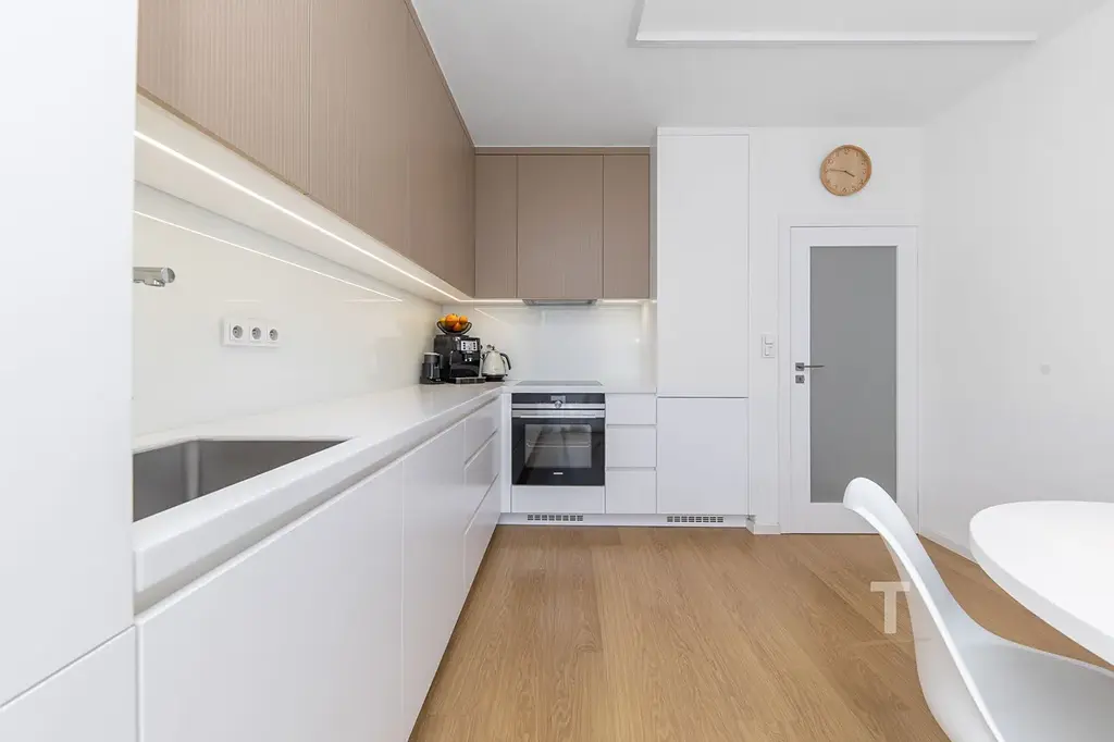 Bytová jednotka má vlastní ústřední topení s kotlem na zemní plyn. Rekonstrukce byla provedena v roce 2022 a zahrnovala: nové rozvody elektřiny, vody, odpadů (po hlavní stoupačku), nové vnitřní omítky včetně perlinky, rekonstrukci koupelny a WC, osazení bezpečnostních vstupních dveří, nové podlahy a radiátory. V bytě jsou posuvné a bezfalcové lakované interiérové dveře. Instalována byla nová kuchyňská linka na míru včetně spotřebičů. Kuchyňská linka má pracovní desku z umělého kamene, lakovaná dvířka a obklady z kaleného skla. Byt je vybaven vestavěným nábytkem. Součástí chodby jsou vestavěné skříně. Nábytek v ložnici je vyroben na míru. V předešlých letech byla osazena plastová okna a nový kotel na topení s vyvložkováním komínu.
