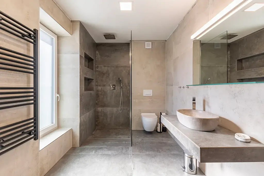 * koupelna se sprchovým koutem i vanou
