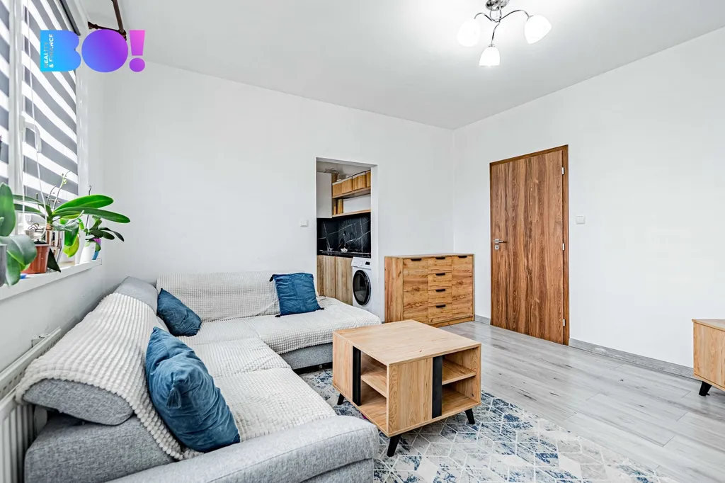 Dispoziční řešení je promyšlené a působí velmi vzdušně. Vstupní předsíň je vybavena vestavěnými skříněmi, které elegantně řeší dostatek úložného prostoru. Koupelna je spojena s toaletou a laděna do čistého, moderního stylu. Kuchyně je vybavena spotřebiči a přirozeně navazuje na obývací část bytu. Samostatný pokoj slouží jako ložnice a dotváří praktické uspořádání celého prostoru.