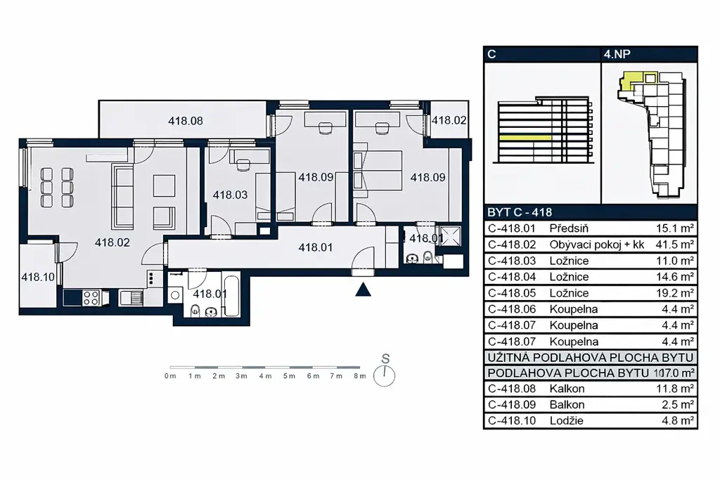 Nabízíme k pronájmu světlý, moderně zařízený byt 4+kk s balkonem a lodžií o celkové ploše 117 m², situovaný ve 4. patře novostavby z roku 2018 v atraktivní lokalitě Praha 3 – Strašnice.