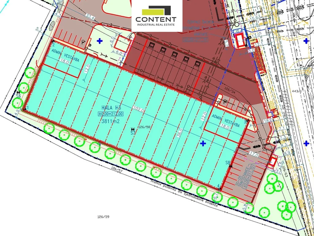 - v lokalitě další, sousedící, budova na pronájem 4604 m²