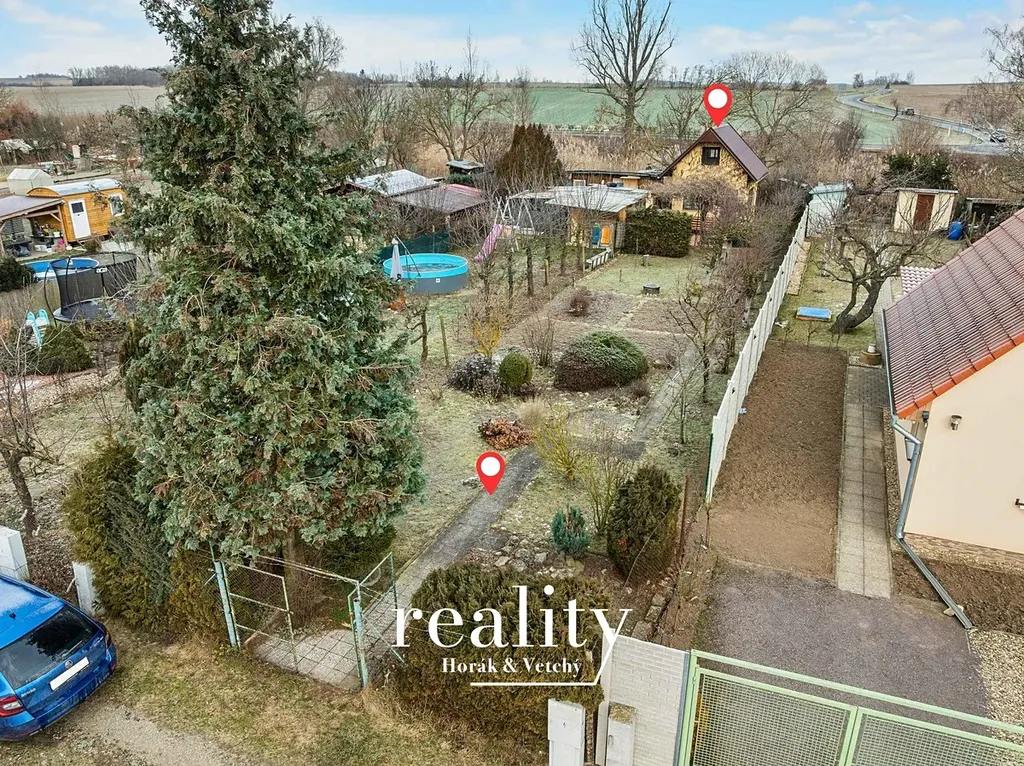 Součástí pozemku je zděná chata s obytným podkrovím, poskytující příjemné zázemí nejen pro letní dny, ale i pro chladnější večery.